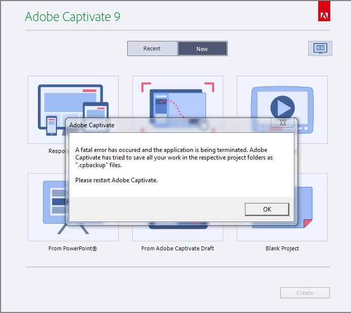 Every time I start Captivate 9 I get this message: