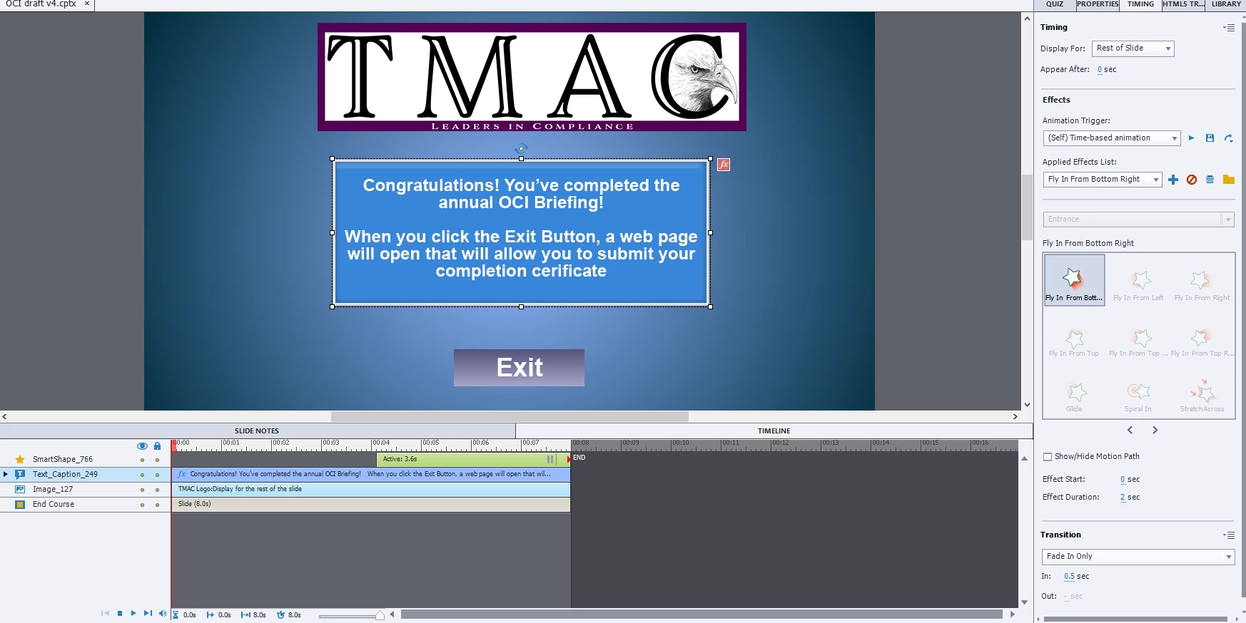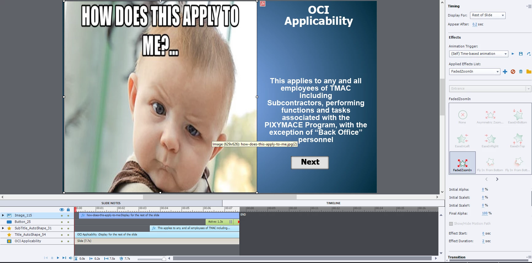 I'm using to entrace effects on 2 different pages in Captivate 2019. When I publish the course there's a flash for a split second before the effect executes. I've tried changing the transition but it has not corrected the issue.