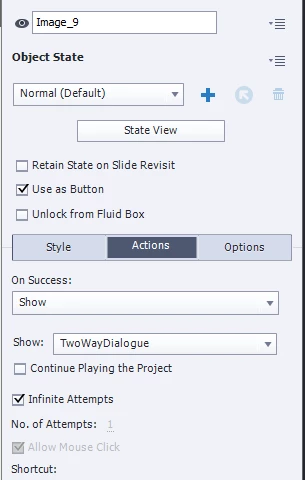 I have created a slide in a responsive project. I have converted four pictures into buttons, and would like a message box to appear when they are clicked. I would like the user to be able to click on the buttons in any order.