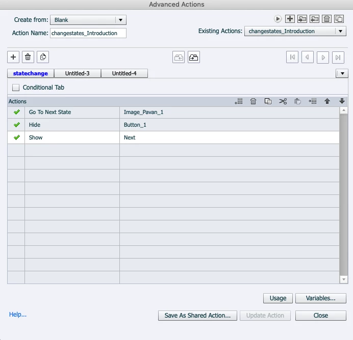 I am working with a multi-state slide in Captivate. I am able to go to the second state but am unable to determine how to go to the third and fourth states. I am enclosing the screenshots for the state view and normal view, as well as the Advanced Action to show the programming I used. Thank you all so much.