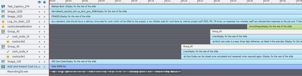 I have read a few posts trying to find a solution to this and most of them refer to an item being paused. But I have gone through them line by line and there is no pause. When it is played in preview it works fine. When previewed in HTML or published it does work. You have to press play after the recoding finishes for group 42 to play, then again for group 43 to play and then again for the next button to show. Any thoughts?