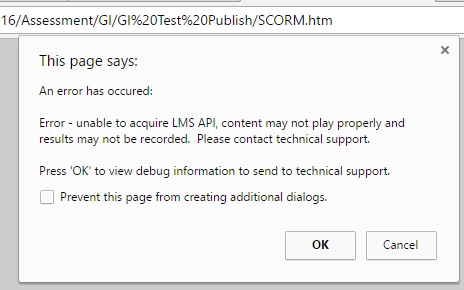 - When using SCORM.htm, this error message showed: