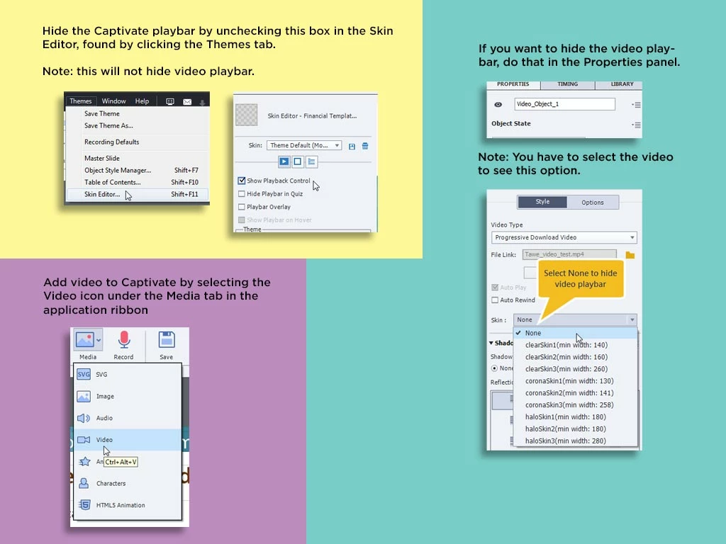 I need to hide the playbar in my videos so that I can just embed them in the existing project and use that playbar.