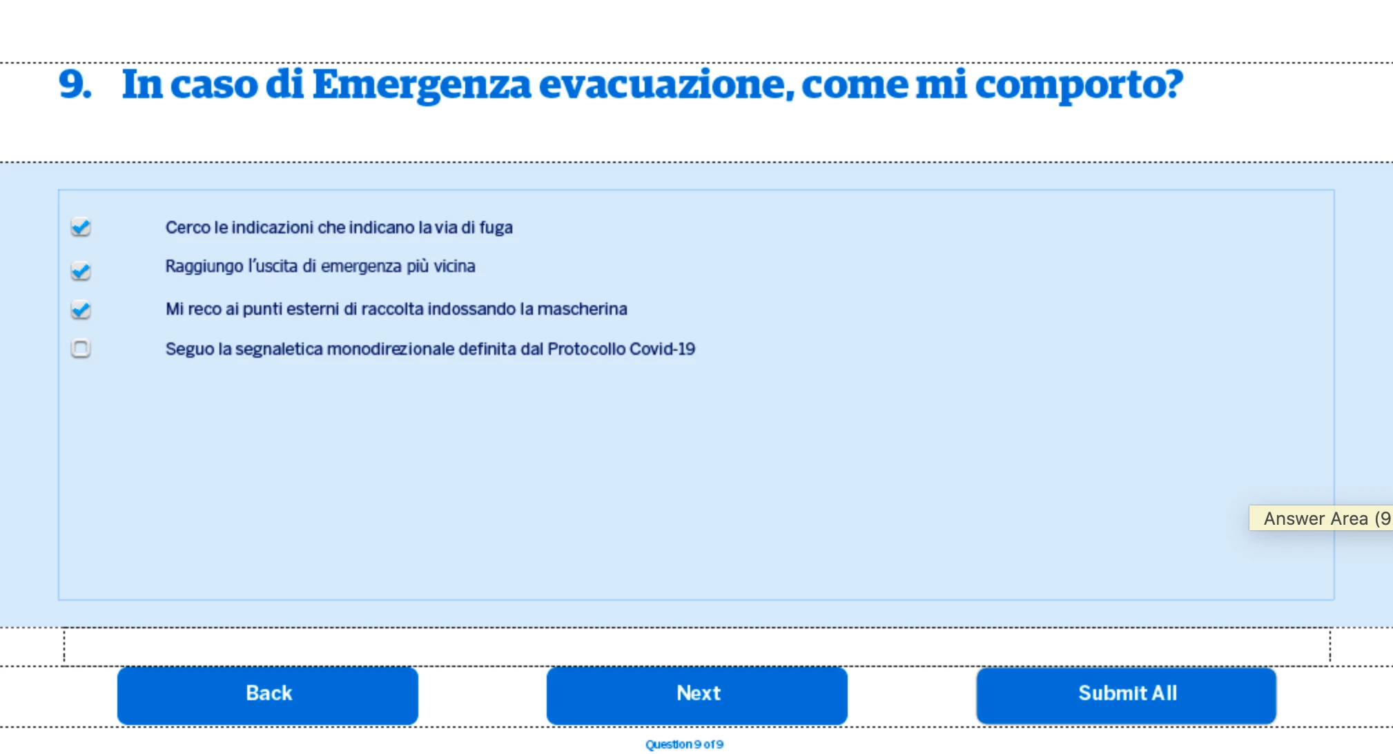 BACKGROUND: There are nine questions which the user needs to answer correctly to pass. If they answer any incorrectly they will need to retake the quiz.