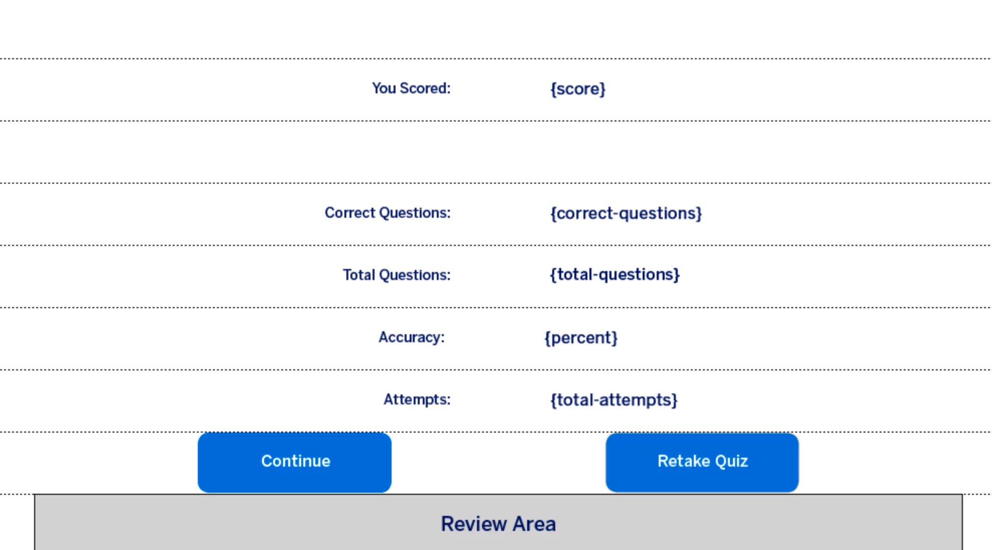 • If there are any incorrect answers I would like there to be just a 'retake quiz' button, not a continue. How can I achieve this?