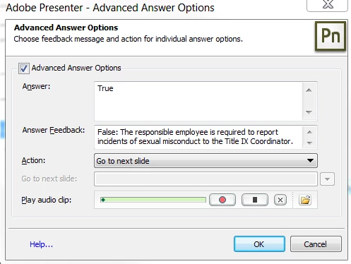 Hi, I'm having issues with quiz questions in Adobe Presenter.