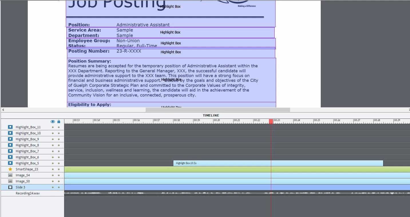 When I test it from the timeline with the audio they come in at the right time but when I do preview in HTML browser it doesn't show? Can anyone help? It worked previously when I had a yellow box there that I removed and replace with these ones as per the feedback from the SME.