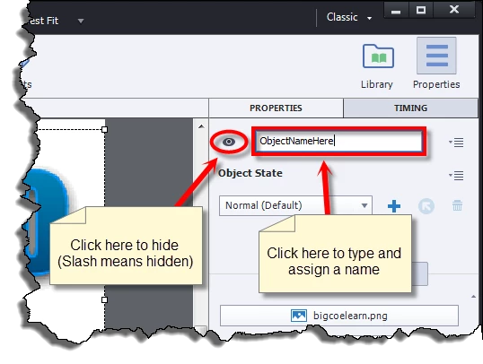 Good morning, how do I create "hidden" text or objects and have them appear when the user clicks a button? Is it different for an image then it is for, say a text box? I would usually use this type of effect for text.