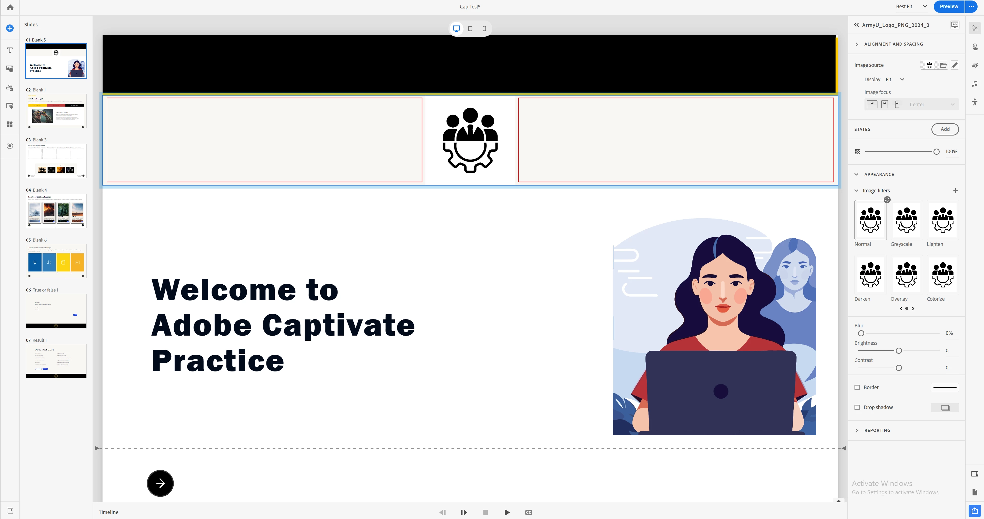 How do you delete an image on Captivate 12.5?