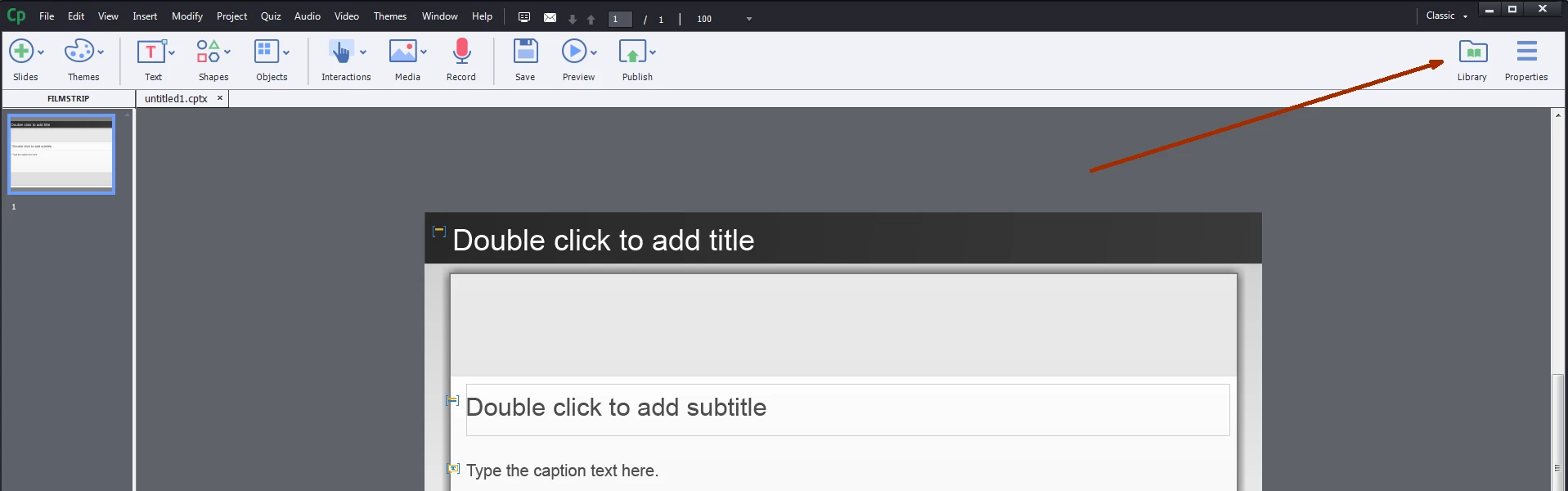 how to access the library and properties in captivate 8