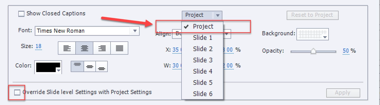 I'm having a heck of a time figuring out how to change the global style for Closed Captions in Captivate 2017. Although I'm familiar with changing other styles, I cannot find where to change closed caption font and background defaults. Currently, I'm changing it within each Closed Caption, which is not very efficient! Thanks in advance.