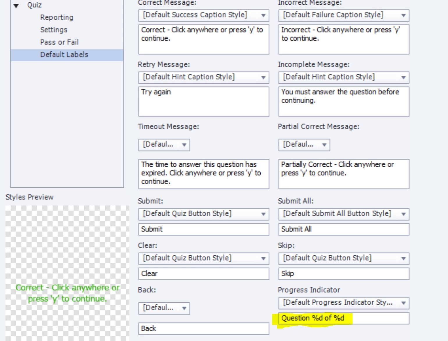 as my captivate is in french, my progress indicator is in french.