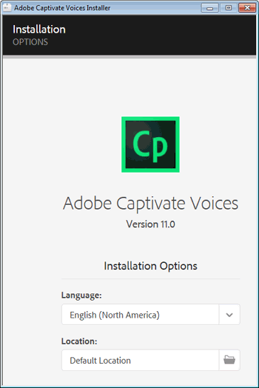 If I want to install the voices or perform an update, I get options displayed, but no buttons to continue the installation. Here is an example: