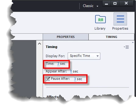 I don't see a timing tab for this button. Just "Properties" and then underneath, Style, Actions and Options.