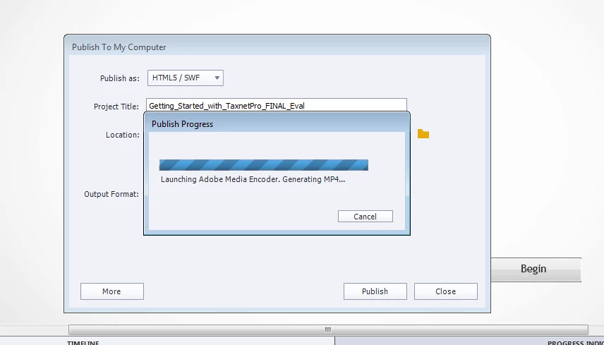 I've added a short movie clip to a slide in my captivate file. When I tried to publish it, a dialog box stating the following appeared: