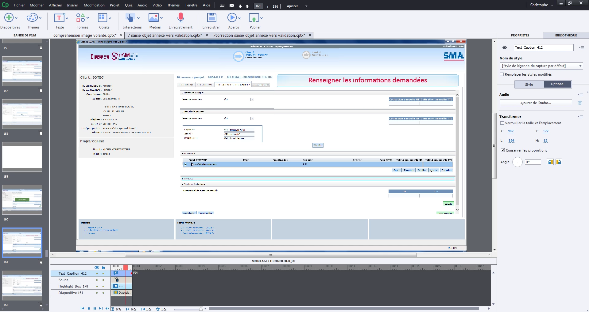 When the slide play, the element disappear (except 2 or 3 frames) :