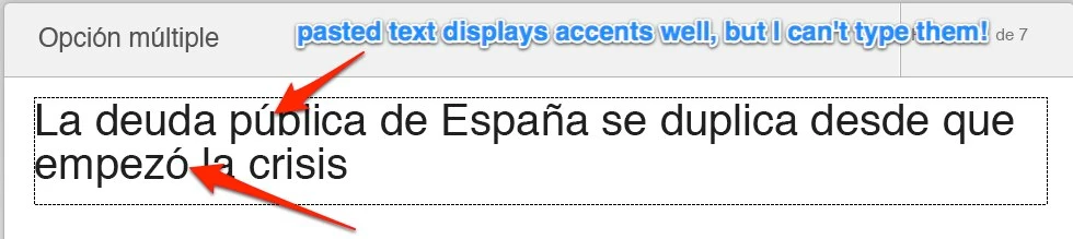 I've just downloaded Adobe Captivate 6 to try it out and found that I can't type some special characters widely used in Spanish language: our accents or tildes (that's the Spanish word for them). That's what I can't type: