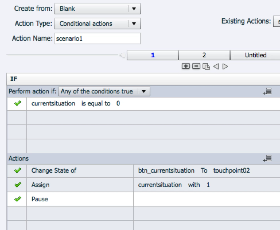 So the if/else statement has 12 tabs. Each tab will change the state and increase a variable by one. But because the action naturally wants to play through all 12 tabs, EVEN IF it finds a statement to be true, the variable is automatically increased all the way from 0 (or 1) to 13 and the state change goes to the last state. The learner never sees the middle.