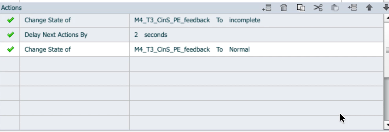 In Captivate 2019 I use the ""Delay next action by" function to delay the change state of an object. In Captivate 13.0 I cannot find the same function in the actions list. Is this function not available in 13.0 if so what is the solution/workaround