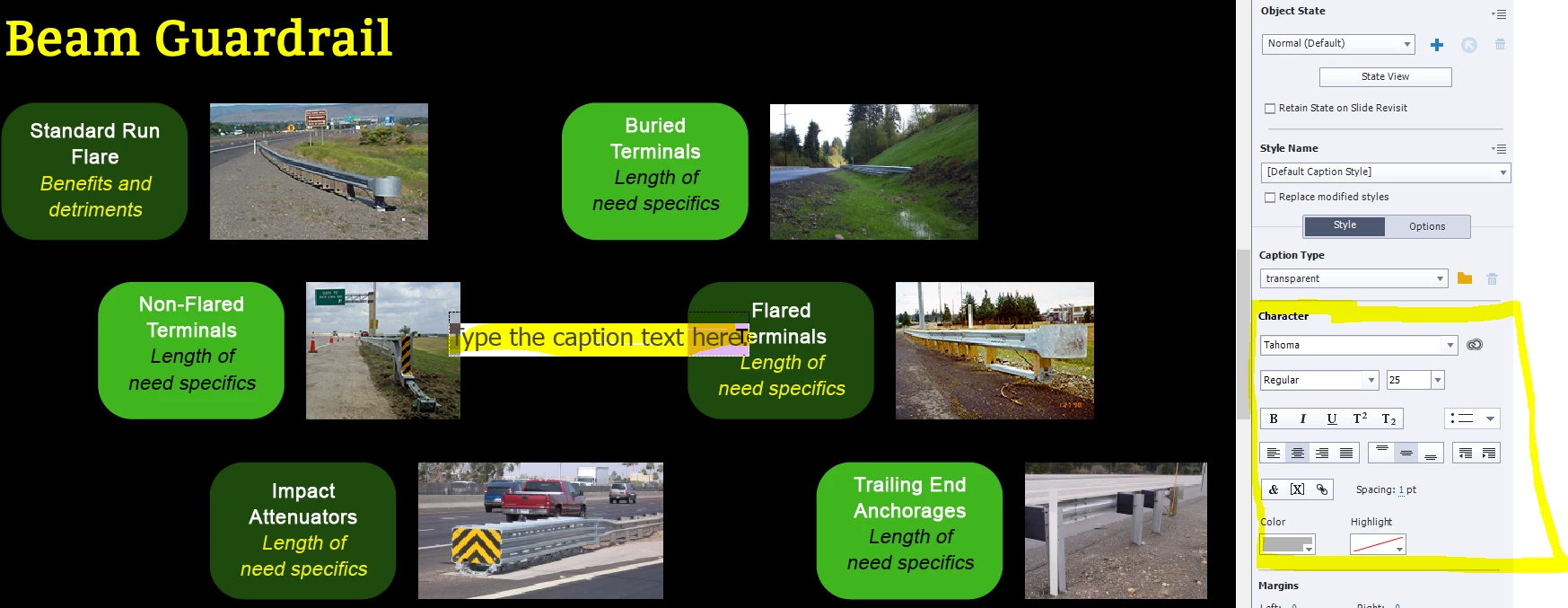But when I insert an all new text caption, it looks like what I should be seeing when editing an existing text entry -