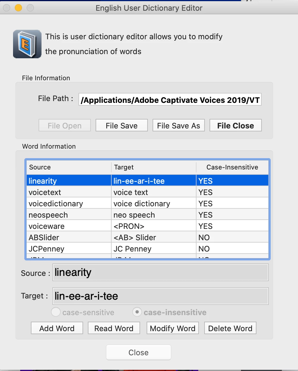 Here I am trying to get it to pronounce linearity correctly. When I try to save it, it will not let me save it. Why? Is this the right way to do it? I am using neo speech Julie. There are a few words it does not pronounce correctly like linearity, but I also need greek letters and roman numerals also.