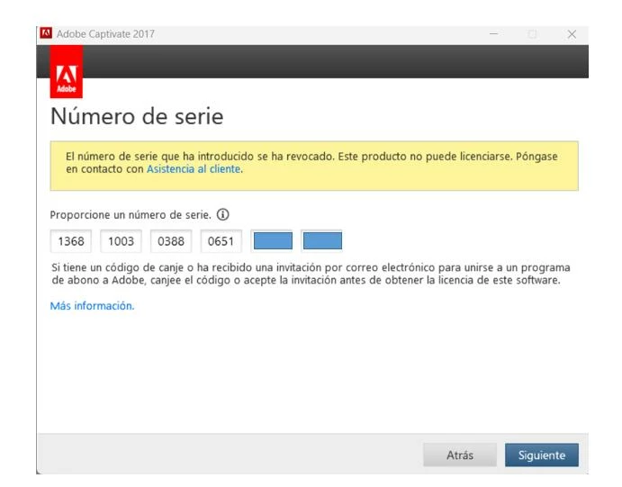 Please try to contact Adobe in your country (I see that you have a Spanish license) to help you. Answers in this forum are mostly given by other users. You could also try to mai CaptivateHelp@adobe.com.