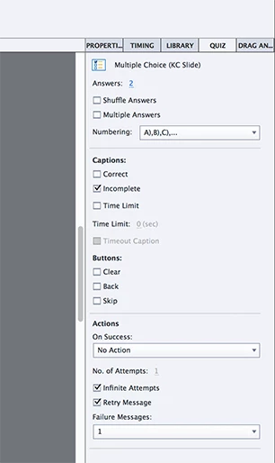 25. Go to the Properties Inspector and open the Quiz Inspector.