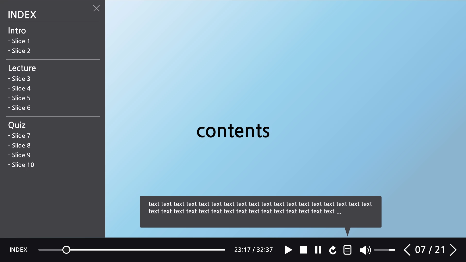 3. If student clicks on the icon to the left of the volume control, subtitles should be shown on the screen. Also, click the icon again and the subtitles should disappear.