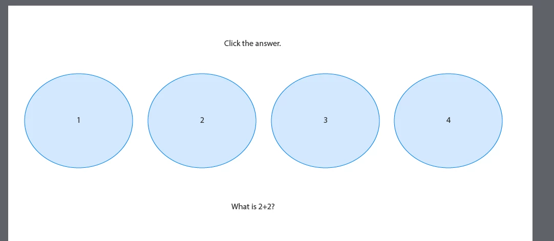 When a user clicks a shape, it brings up the Shared Action "Incorrect" or "Correct." The "Incorrect" action: