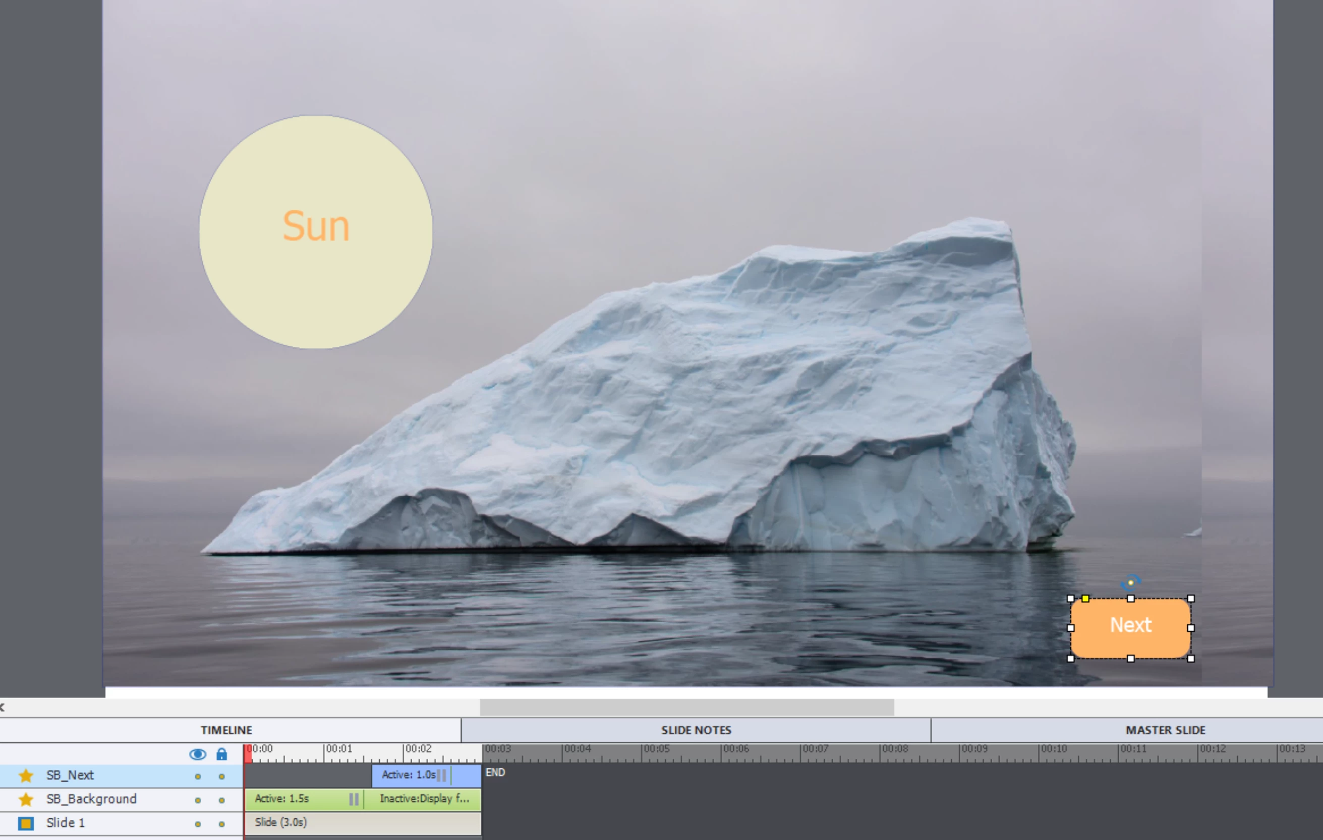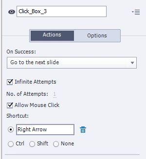 In this project, what I want to do is let the image Moon and text Moon appear first, and after I click on the slide, the image Sun and text Sun will appear. The way I do this is adding 2 click boxes, and their Action on Success are Continue and Go to the nesxt slide. The area of the click boxes tile the whole slide. This is ok. But I always think there probably some efficient ways to achieve this. If there are, could you give me some related links? I can't find them in this community. Thank you so much!