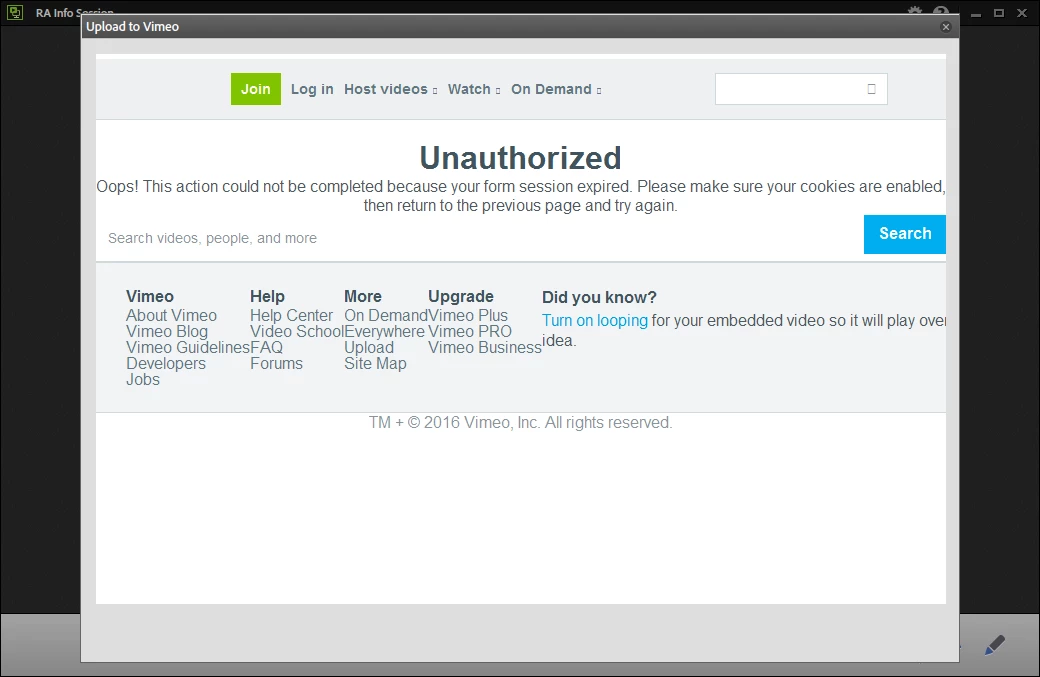 Issue Uploading to Vimeo