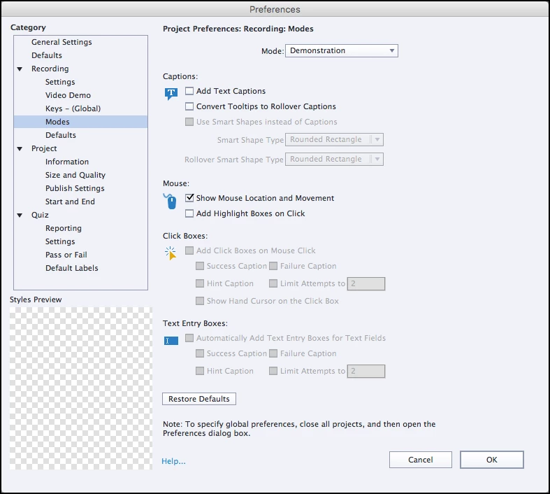 Since I have started using CP 17, my mouse movements are not recording in software simulation. I have to manually add the mouse to each slide and then adjust it's location. I have mouse location and movement box checked, but still it's not picking up the mouse movement.