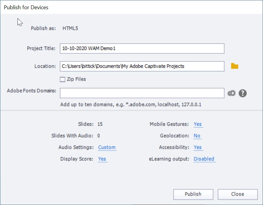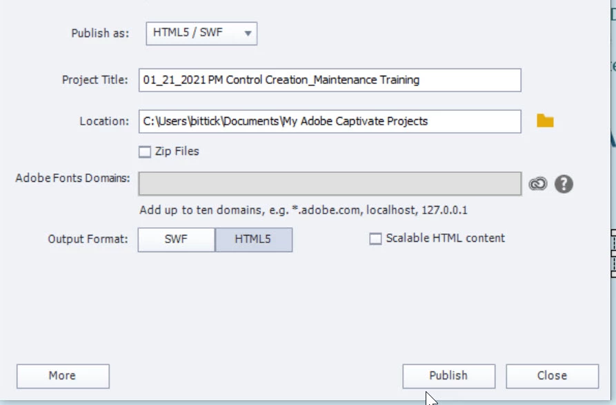 What's really weird is another project I did about a month ago has these settings: Publish to HTML5 only. No mention of SWF. What gives?