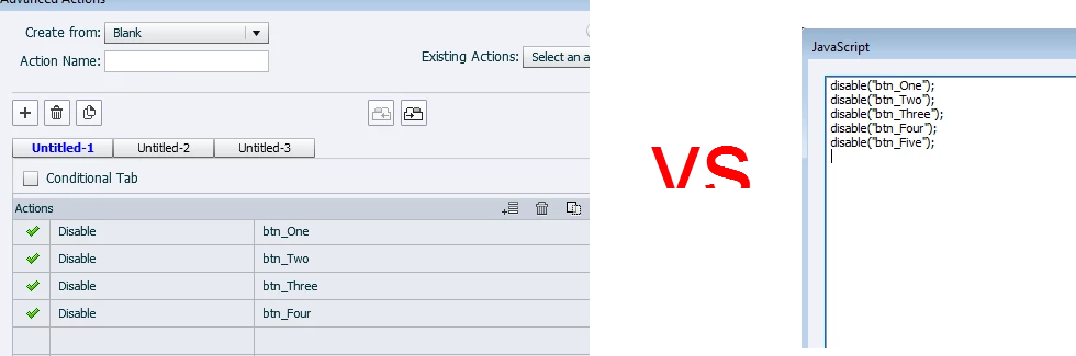 I would like to hear opinions about the advantages and disadvantages of using JS vs Advanced/Shared actions.