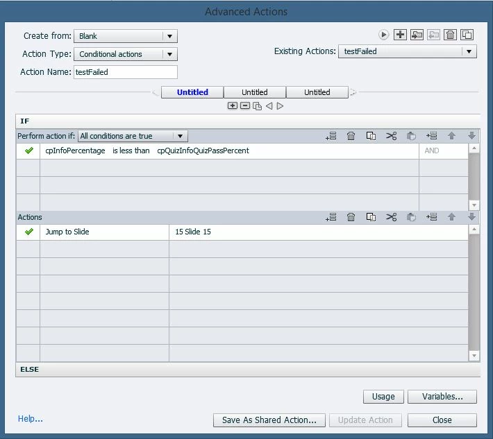 After my learner completes the end-of-course quiz, if they fail it I'd like to be able to send them back to the content to review and then try the quiz again. But, whenever I attempt to use an advanced action to do this: