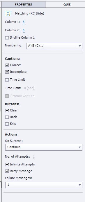 I am using Captivate 2019. I have a knowledge check matching slide with correct and incorrect captions. The correct caption shows in HTML5 preview, but the incorrect caption does not show up at all - even when I test it before I make any adaptations to the slide. What am I missing?