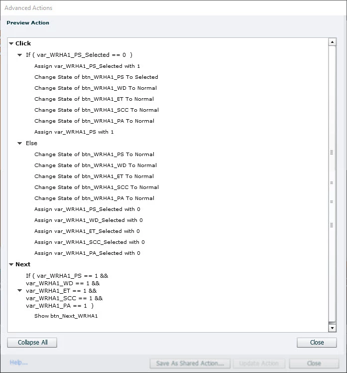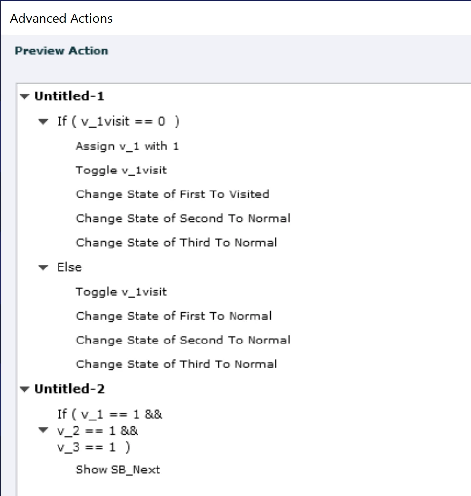 If you are new to advanced actions read this blog: http://blog.lilybiri.com/advanced-actions-dialog-box-in-captivate-2017