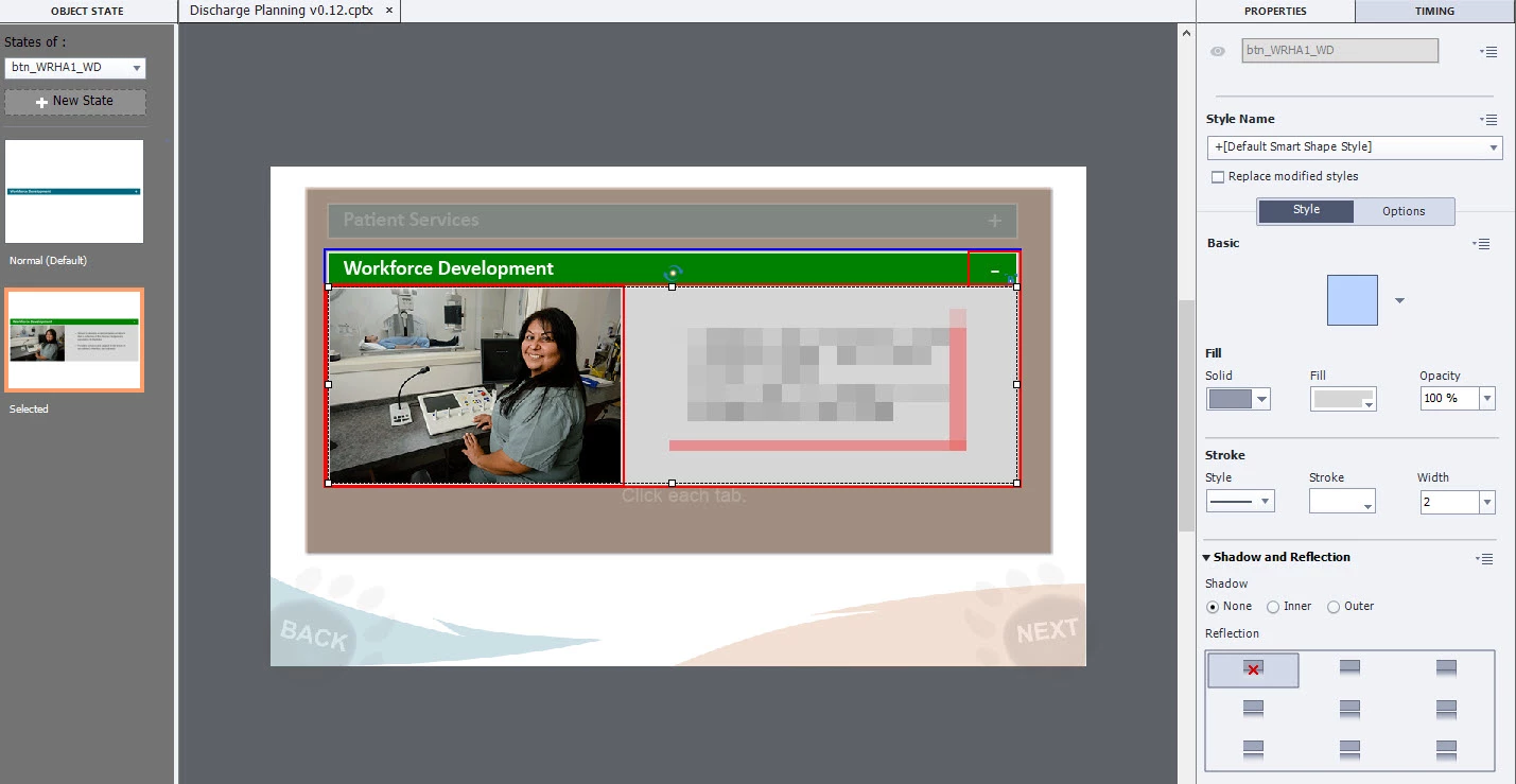 • I was hoping that if btn_WRHA1_PS is above the other objects in the timeline, that any objects associated with the btn_WRHA1_PS Selected state would cover the other objects on the slide, eliminating the need for me to hide the other + signs