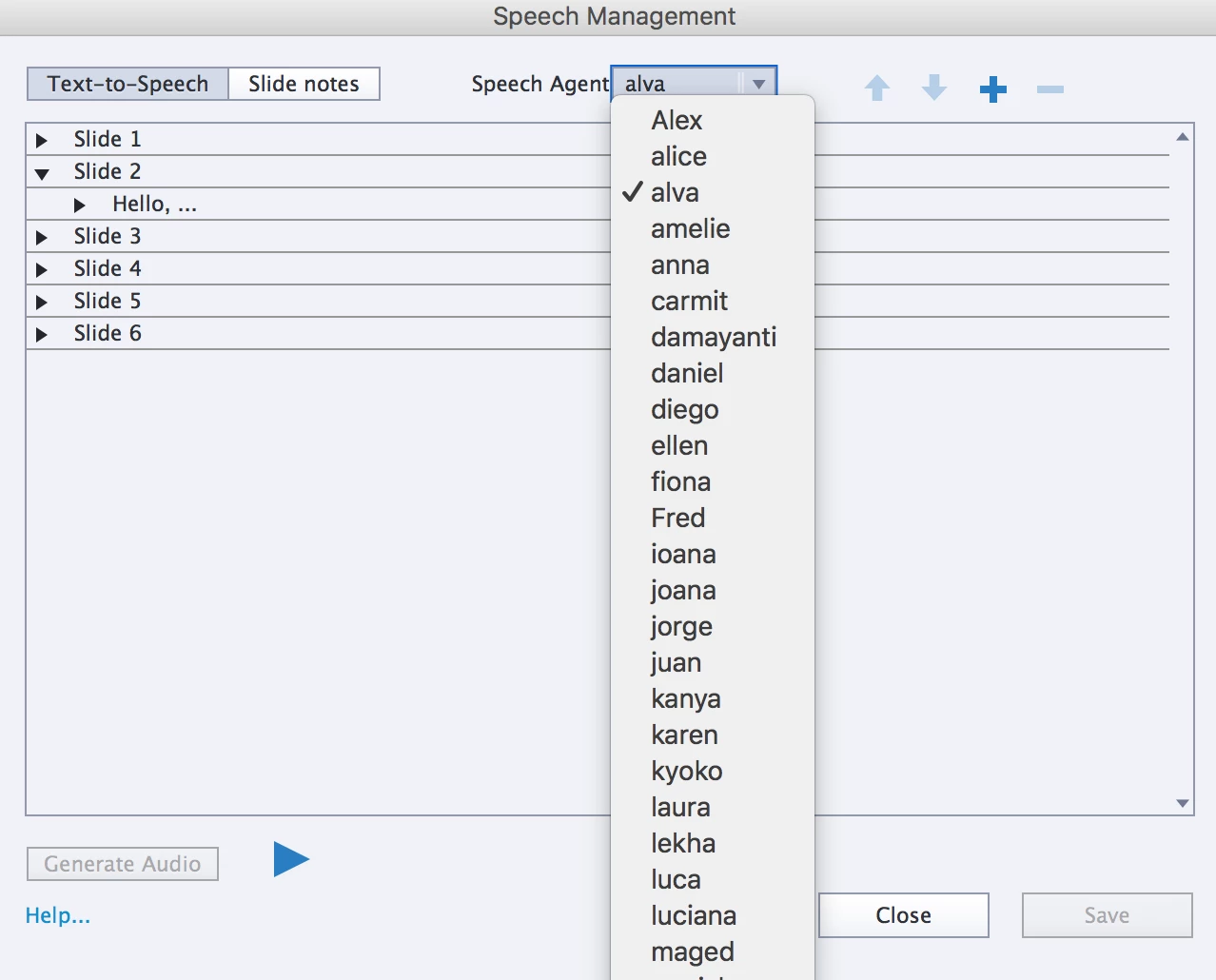 But what about the rest of the speech agents; such as alice, alva and amelie? What is their native language?