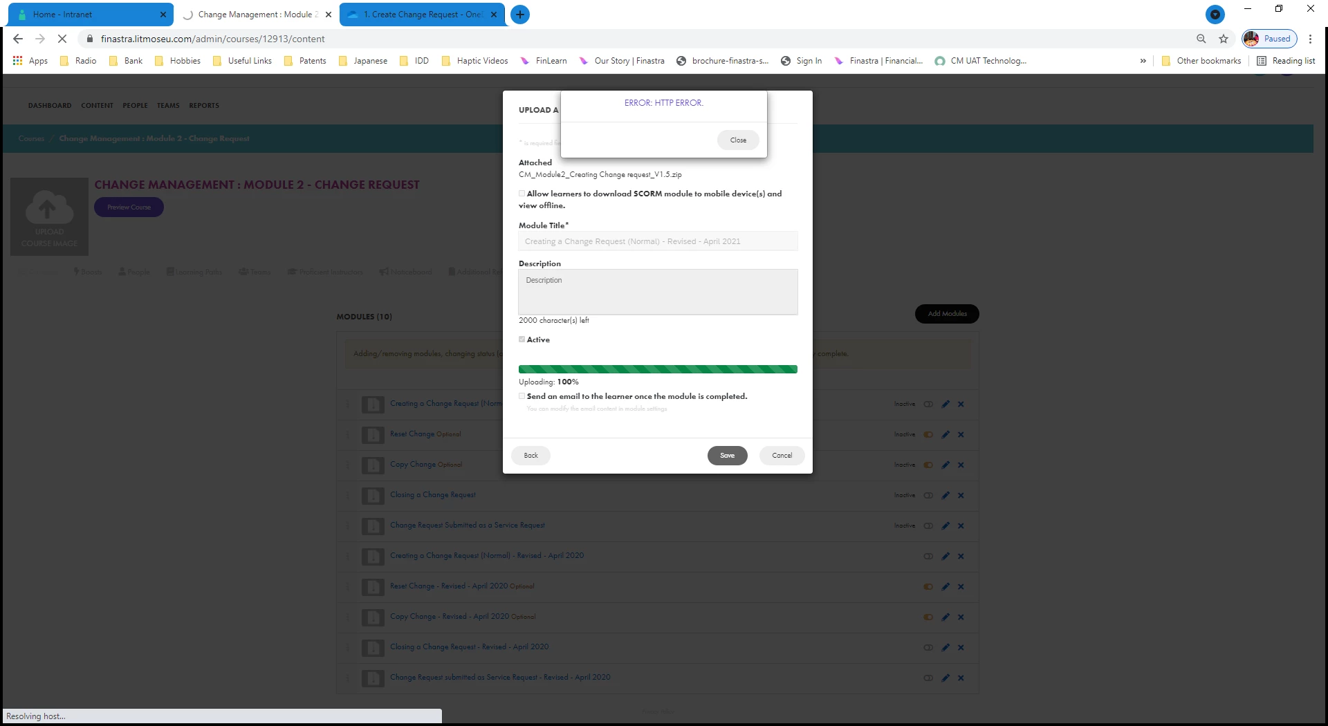 While I am trying to upload a SCORM package in Litmos, it is giving me a HTTP error and also another error when processing. Is this error related to any Captivate settings issue? Can anybody help?
