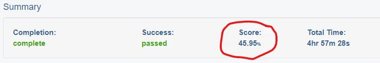 - It gives at least ONE object that reports an actual score to the quiz, and that will then satisfy almost all LMSs that sometimes get 'thingy' about not finding at least some quiz elements.
