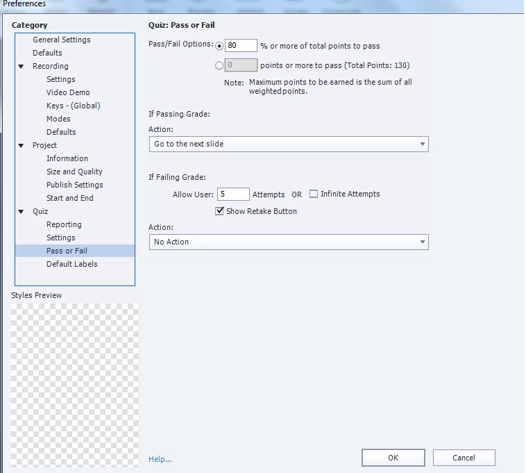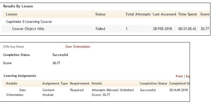 The course is tracked as failed in content level within Captivate but is communicated as successful to eLearner in the Learning Management System. Which settings in Captivate need to be changed for the LMS to indicate unsuccessful with quiz completion scores under 80%?