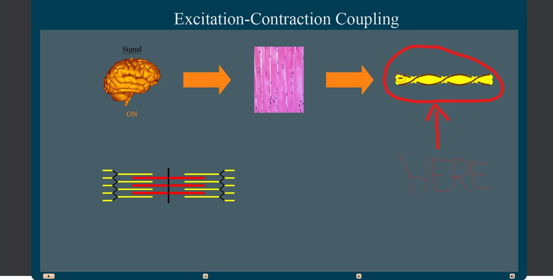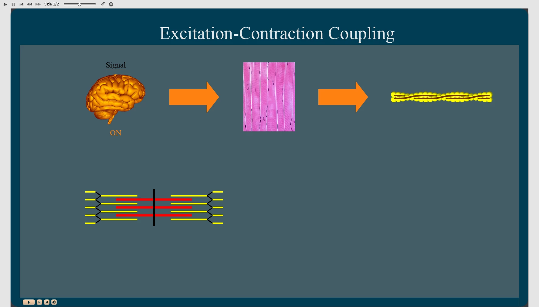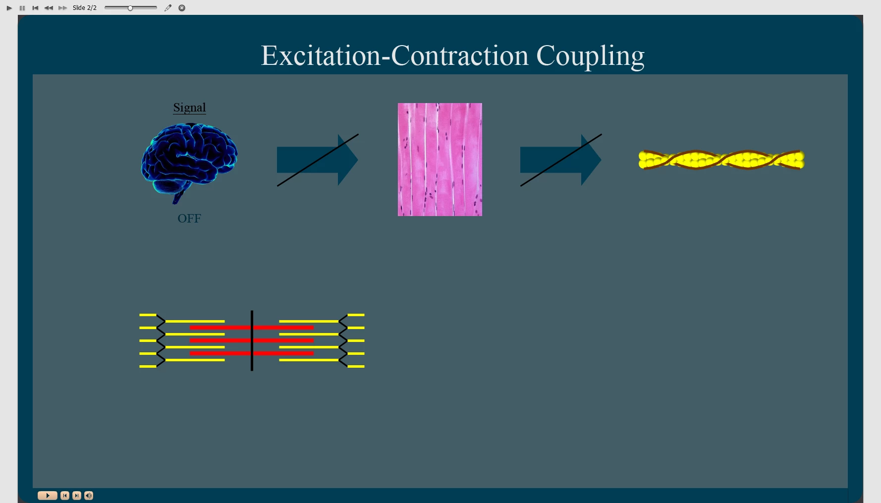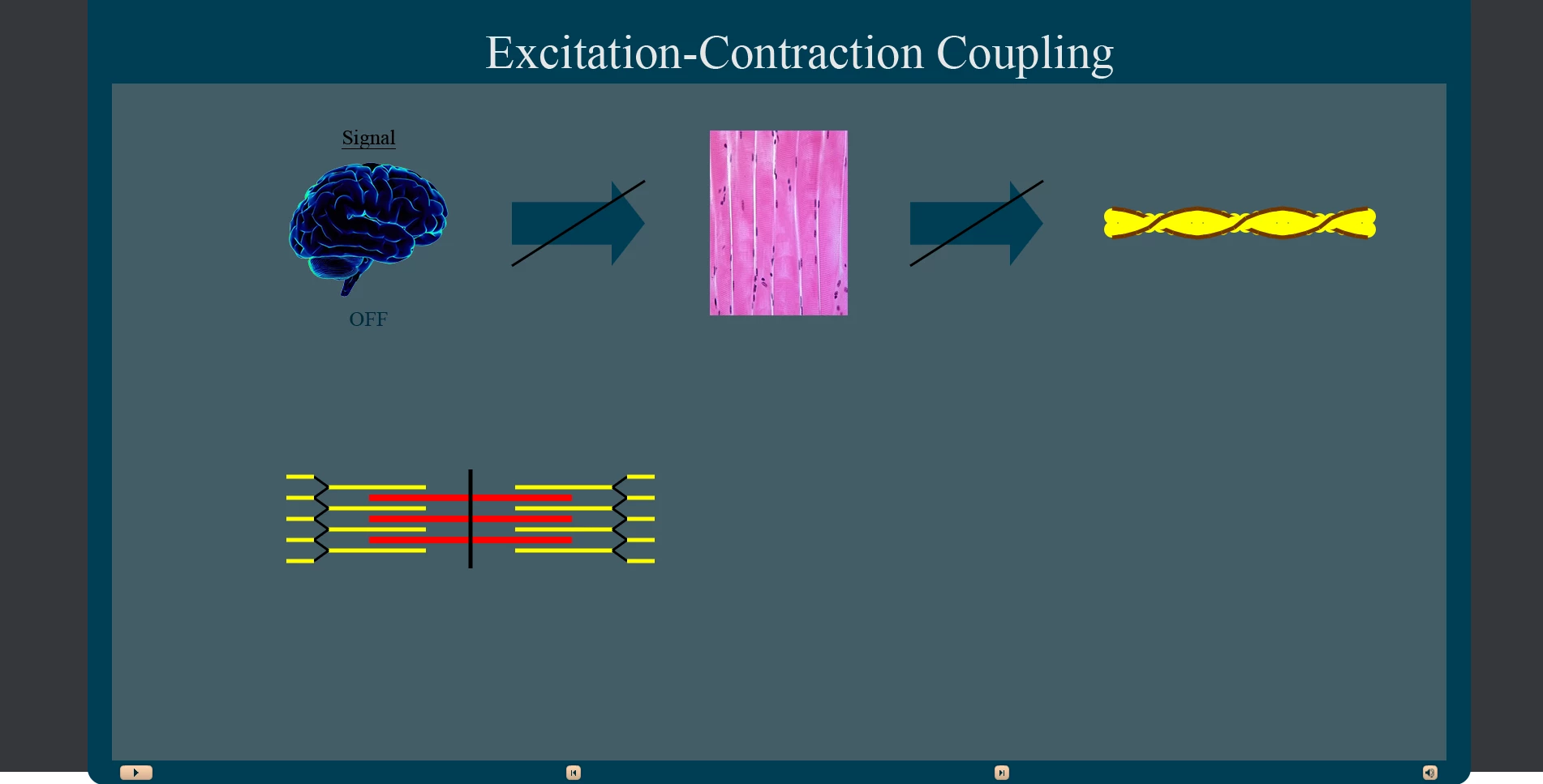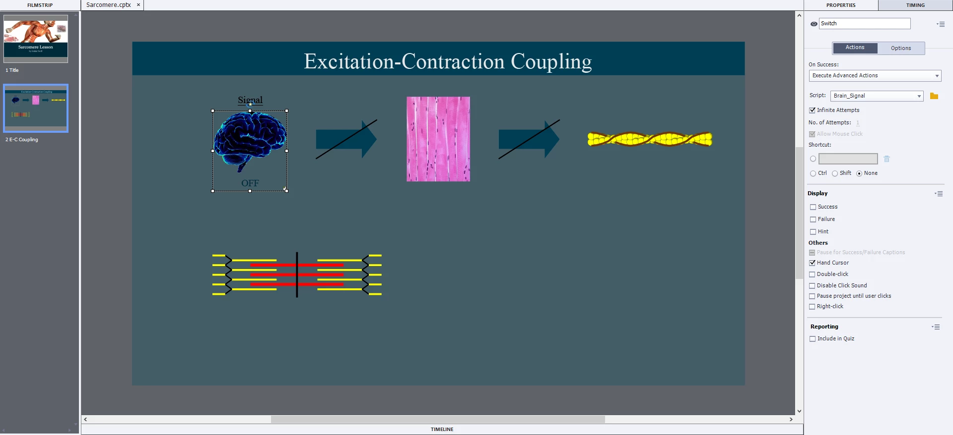 When the box is clicked all the following are supposed to "go to next [('normal' <--> 'ON')] state": Brain, 2 Arrows, and 42 Lines (a.k.a. 'Tropomyosin').