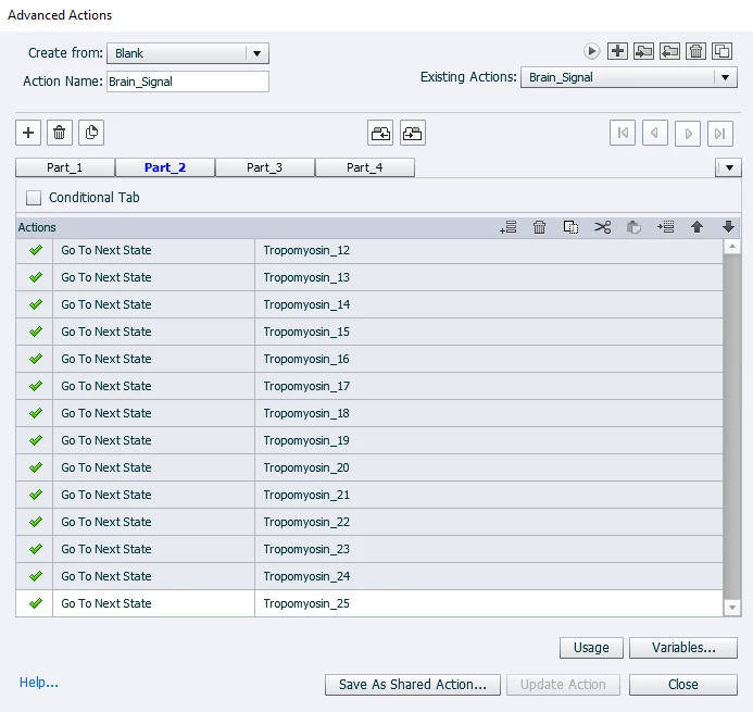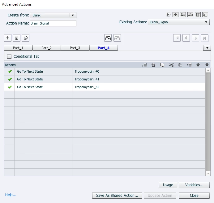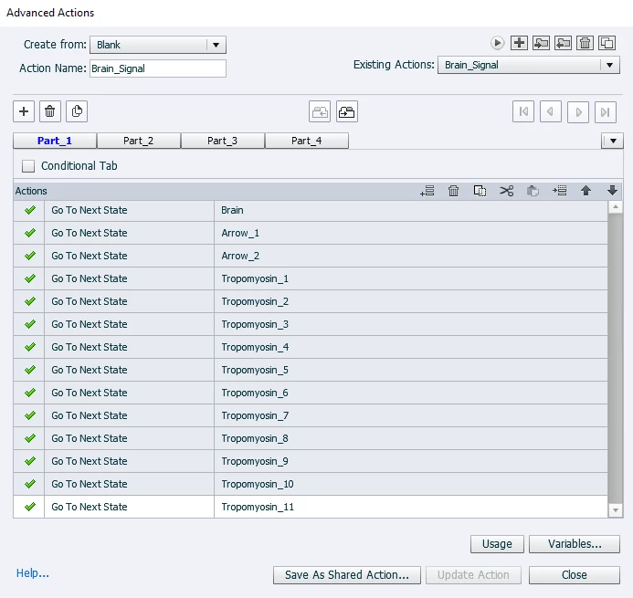 However, on HTLM5 Preview (publishing format), the Brain and 2 Arrows properly change state but only the 1st line (from the 42) successully changes state whilst the others remain unchanged.