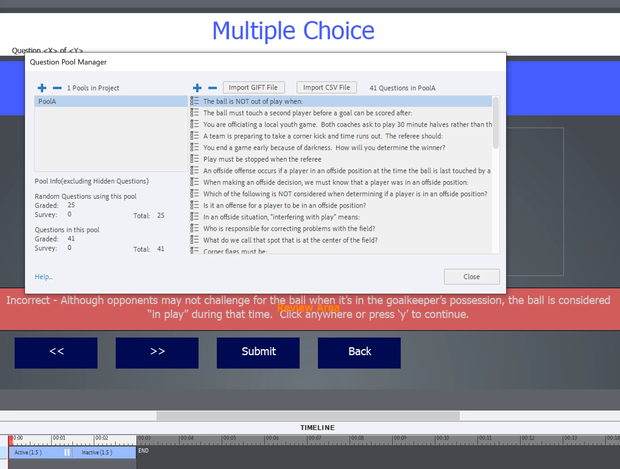 I've created a quiz project that uses pool questions. When I originally created the project, the slides with the pool questions appeared in a window at the bottom of the screen (where "timeline" is) and I could see the slides in sort of a "filmstrip" view at the bottom of the screen. Now, when I open Question Pool Manager, I see the slides at the bottom for a second or two, but they disappear and go back to timeline. This window then appears with a list of the questions. If I want to review or change one of the question slides, I have to choose it from this window. Is there a way for me to get the question slides to display in the bottom of the page again so that I can use that to scroll through the slides more easily?