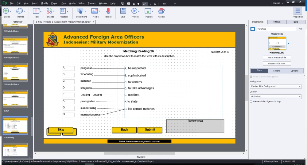 Matching Question Drop Down too long for published view