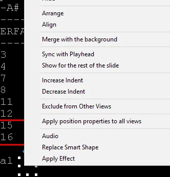 This is a very strange phenomena... I create a shape on a slide and use the right click and select "Merge with the background"... in most cases, this works. However, I have run into a number of places where the option doesn't show up with the right click. So, I move this object to another place on the screen and voila.. the option shows up with a right click. I can't explain why this occurs. There is nothing in this location or any current objects. Any help on this one would be appreciated. Thanks!