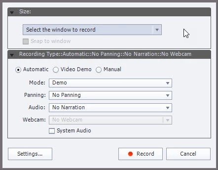 I am using Captivate 2019, but when I go to record a screen capture, the only option I have is to select an application window. I don't have the radio button options to select a Screen Area at a custom size, so I have to shove the window I want to record into the tiny red box and am unable to fullscreen at all.