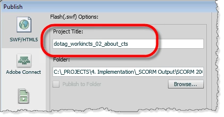 As you can see above, what's coming out is NOT the SCO Title tag value from the Manifest dialog, and although it looks similar, it's not the SCO ID either.  The value is in fact taken from the Publish dialog's Project Title field.