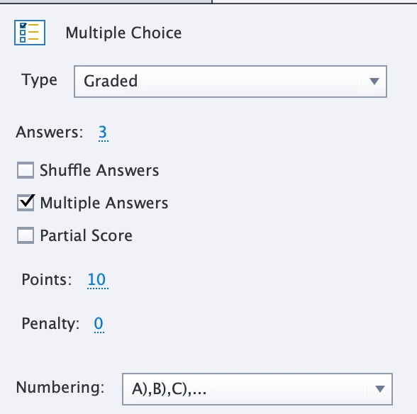Multiple answer multiple choices custom feedback